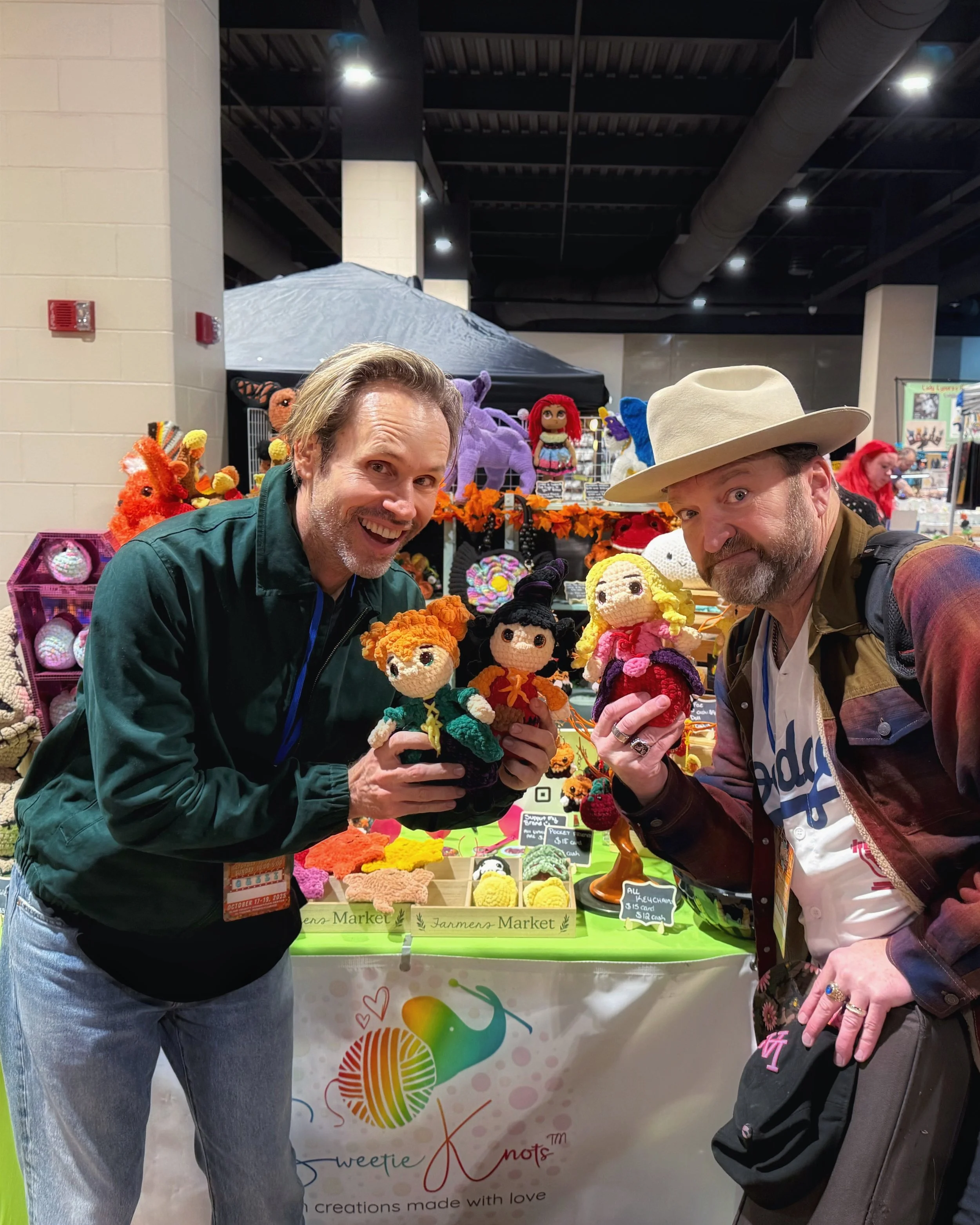 Tobias Jelinek & Larry Bagby with the Hocus Pocus dolls Sweetie Knots made. SciFiCon ‘25.
